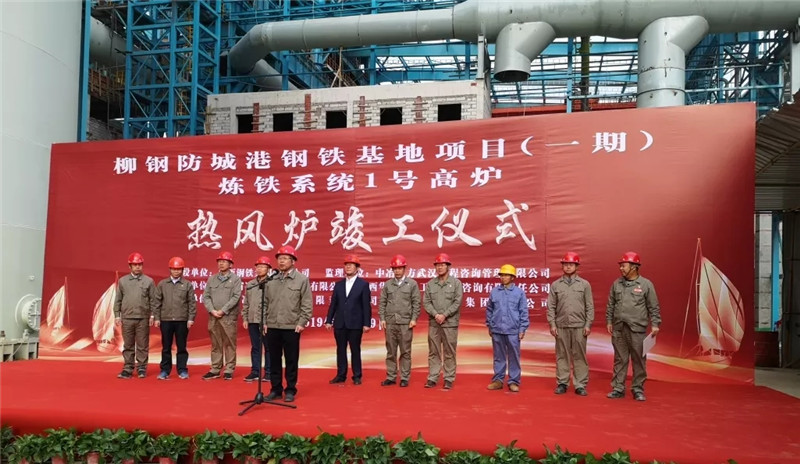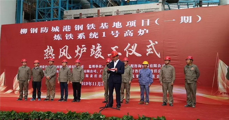 2019年11月29日,柳鋼防城港鋼鐵基地煉鐵系統(tǒng)1#高爐熱風爐舉行竣工儀式。山冶設(shè)計董事長魏新民、副總經(jīng)理宋志順出席了竣工儀式,同時出席竣工儀式的還有柳鋼集團總經(jīng)理甘貴平,柳鋼集團副總經(jīng)理、廣西鋼鐵黨委書記、董事長閻駿,廣西華銳鋼鐵工程設(shè)計咨詢有限責任公司副總經(jīng)理、總工程師吳建霖,十一冶建設(shè)集團有限責任公司總經(jīng)理何權(quán)等相關(guān)人員。