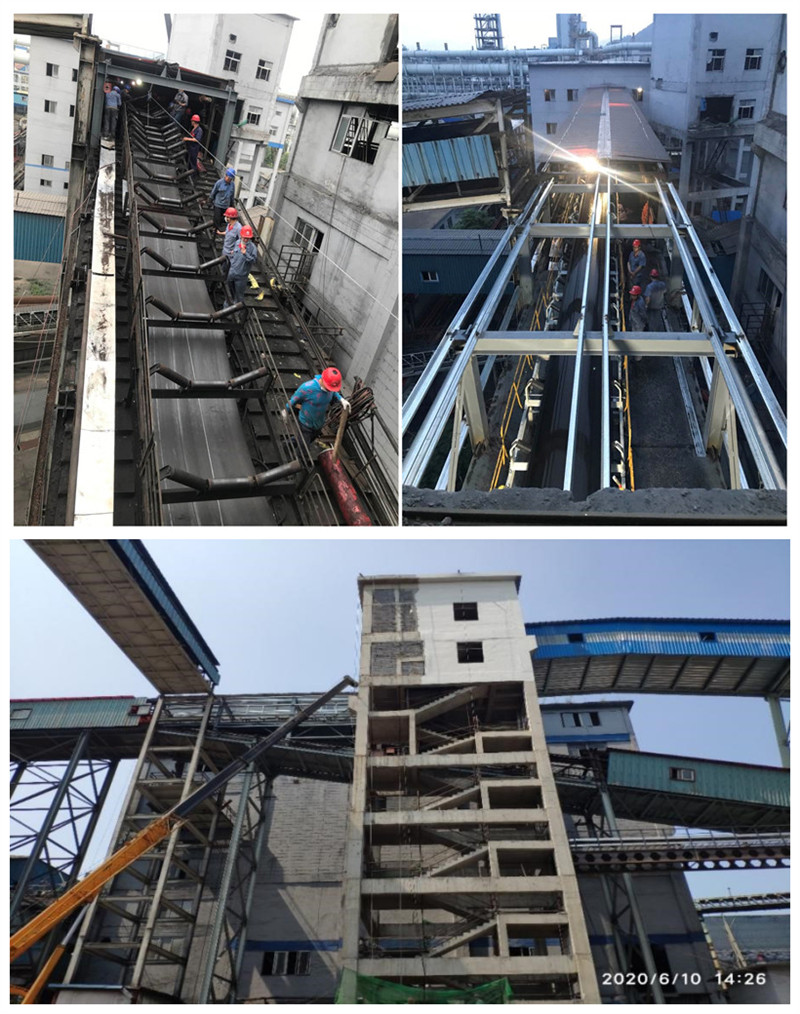 至新區78號焦爐輸煤生產線是焦化筒倉一期一步工程施工難度最大的一條生產線,新建3個轉運站、2條皮帶通廊、改造1條皮帶通廊,全長400多米。皮帶通廊即有半地下鋼筋混凝土結構也有架空鋼結構,架空部分緊靠鐵路及高落差護坡,與生產嚴重交叉,組織施工及吊裝難度極大。項目部各專業人員積極配合,協調各施工單位,分段作業,由于組織得力,各專業銜接緊密、配合緊張有序,土建積極給鋼結構、鋼結構積極為機裝、機裝積極為電裝及后工序創造條件,特別是最后三天,鋼結構收尾、支架及皮帶安裝、單機調試、設備運行調整、舊皮帶通廊改造、新舊系統聯動控制調試、照明報警及語音系統安裝調試,時間緊任務重施工難責任大,現場各類施工人員多,項目部人員靠現場,緊抓安全,積極協調,最終克服了各種困難,最終超額提前圓滿完成任務。