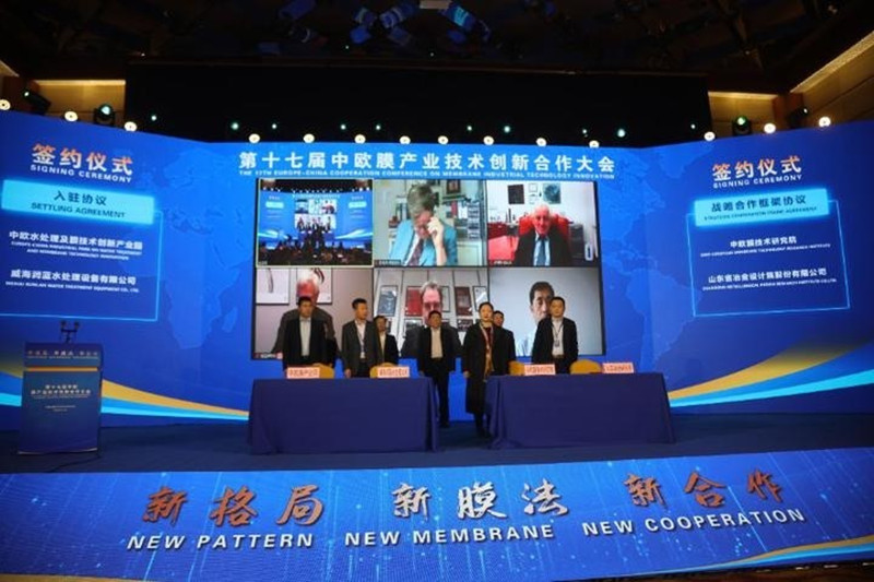 此次大會由山東省科技廳、威海市人民政府、中國膜工業協會、歐洲膜學會聯合主辦;由威海市科學技術局、環翠區人民政府、哈爾濱工業大學(威海)、青島農業大學、中歐膜技術研究院承辦。本次大會邀請了歐洲膜學會名譽主席恩瑞克·德里奧利,中國工程院院士、哈爾濱工業大學教授、中歐膜技術研究院院長馬軍等多位國內外膜科技領域專家學者線上、線下同步參會。參會各方圍繞膜產業發展作主旨演講、專題報告,促進威海膜產業升級發展。