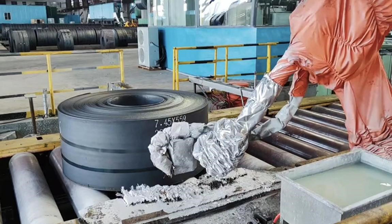 2022年夏天,在天津榮程聯合鋼鐵集團有限公司一軋車間運輸鏈旁,多出了兩個瘦高橙黃色身影,它們絲毫不畏懼近在咫尺的高溫鋼卷,夜以繼日的舉起噴槍將產品信息噴寫在鋼卷上。同時,在山東鋼鐵集團日照有限公司煉鋼廠門處的平臺上,三個不知疲倦的高大銀灰色身影,日夜不停的揮動著自己強壯有力的臂膀,快速準確的插入下方運包車的鐵水包內,精確穩定的測量出鐵水溫度,并降鐵水樣品完好無缺的取出。“它們”便是山東省冶金設計院股份有限公司(后稱山冶設計)自主研發的智能機器人系統,旨在用機器人代替人實現繁重、重復、惡劣的崗位。